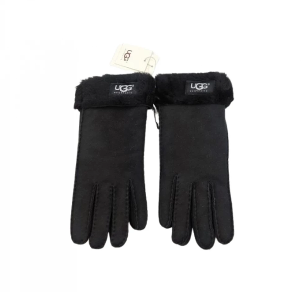 Женские Меховые Перчатки Ugg Черные Замшевые (01)